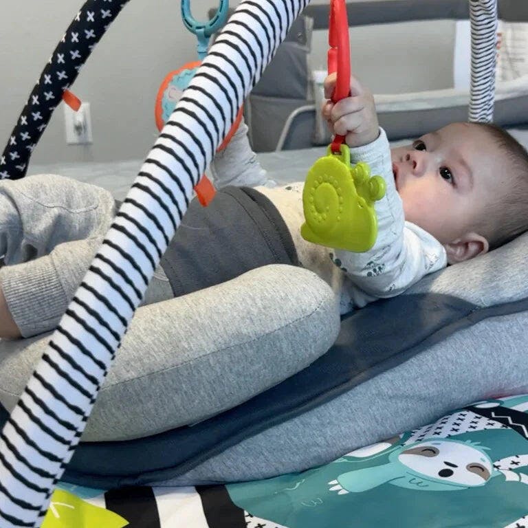 Yükseltilmiş yan destekler ve ayarlanabilir güvenlik kayışı sayesinde bebeğin sırtüstü pozisyonda kalmasına yardımcı olur; dönme riskini azaltmayı destekler.